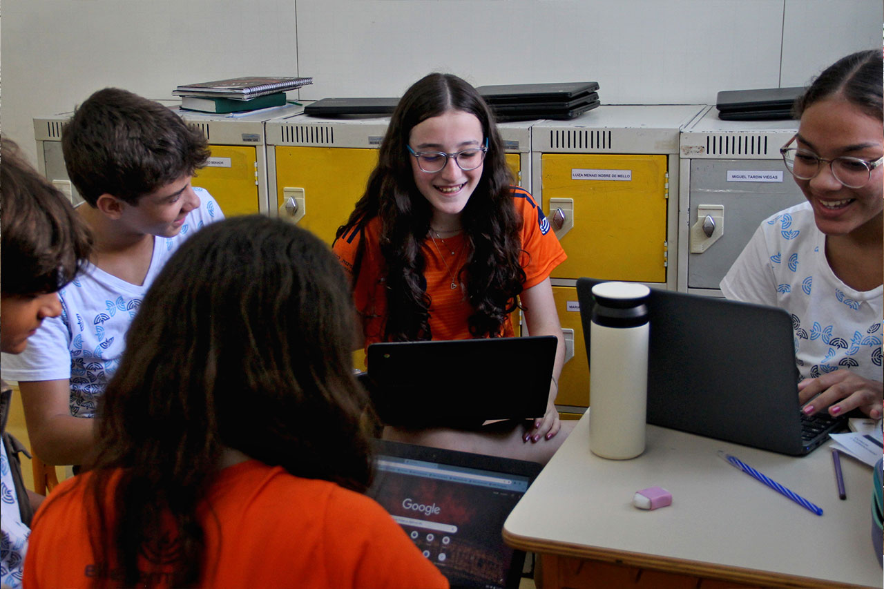 Integramos ao currículo as tecnologias digitais de forma orientada e planejada, promovendo a alfabetização e o letramento digital, a partir do uso consciente e criativo de ferramentas que enriquecem o processo de ensino-aprendizagem. Nosso enfoque diferencia o uso responsável e produtivo da tecnologia do uso sem controle, promovendo a formação integral e crítica dos estudantes.